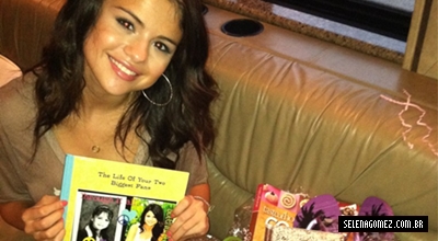 We Own The Night Tour, acabou de postar em seu Twitter uma foto suuuper fofa da Selena com presentes enviados por fãs. Pelo que parece, foram duas garotas que mandaram um scrapbook e uma cestinha cheia de presentinhos para a Sel – tem até um CD do Paramore, uma das bandas preferidas dela.
